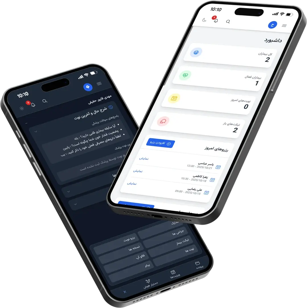 تمام دادهها با رمزگذاری پیشرفته (SSL + AES256) در سرورهای امن ذخیره میشوند و فقط اعضای مجاز تیم درمانی میتوانند به آنها دسترسی داشته باشند.