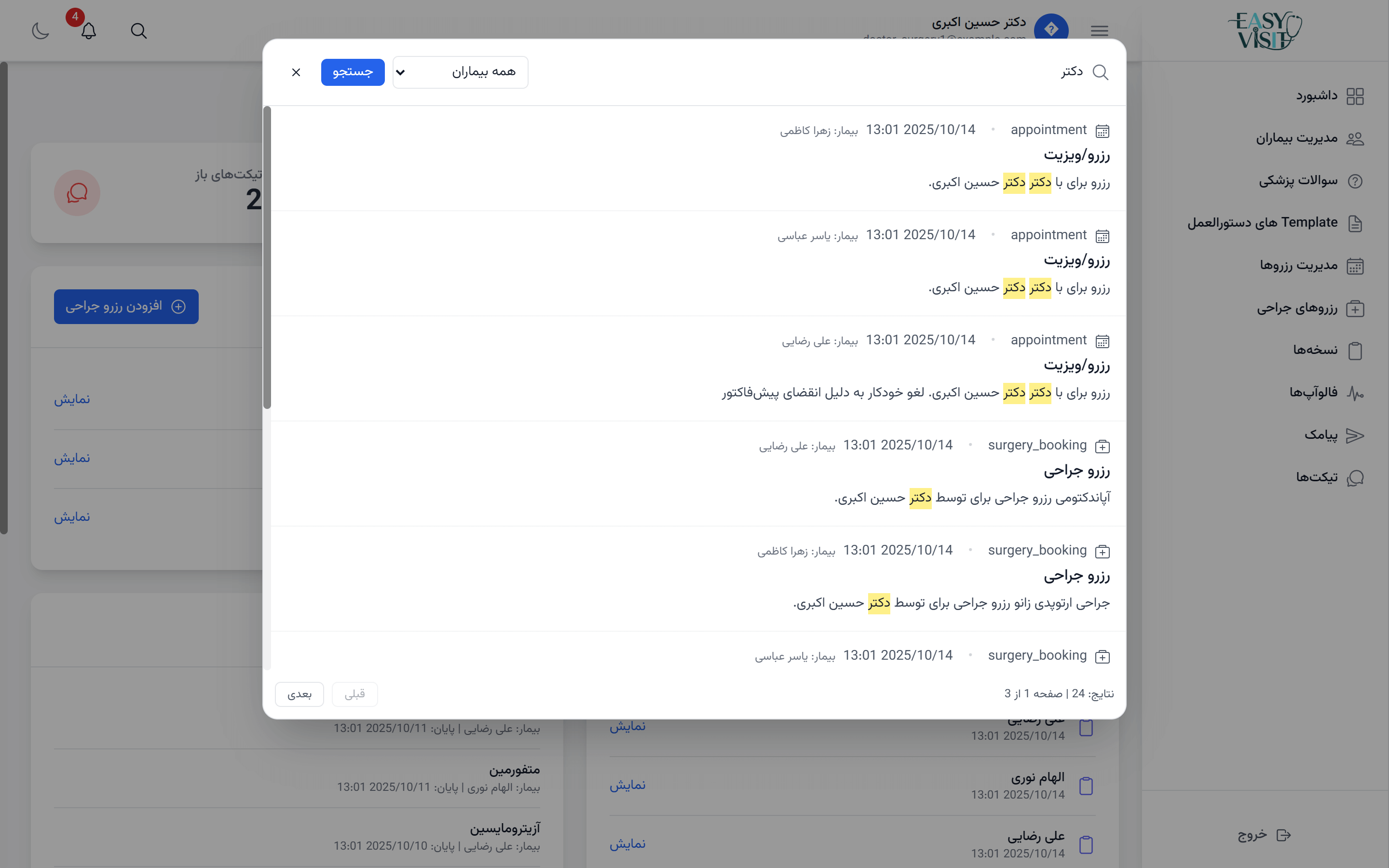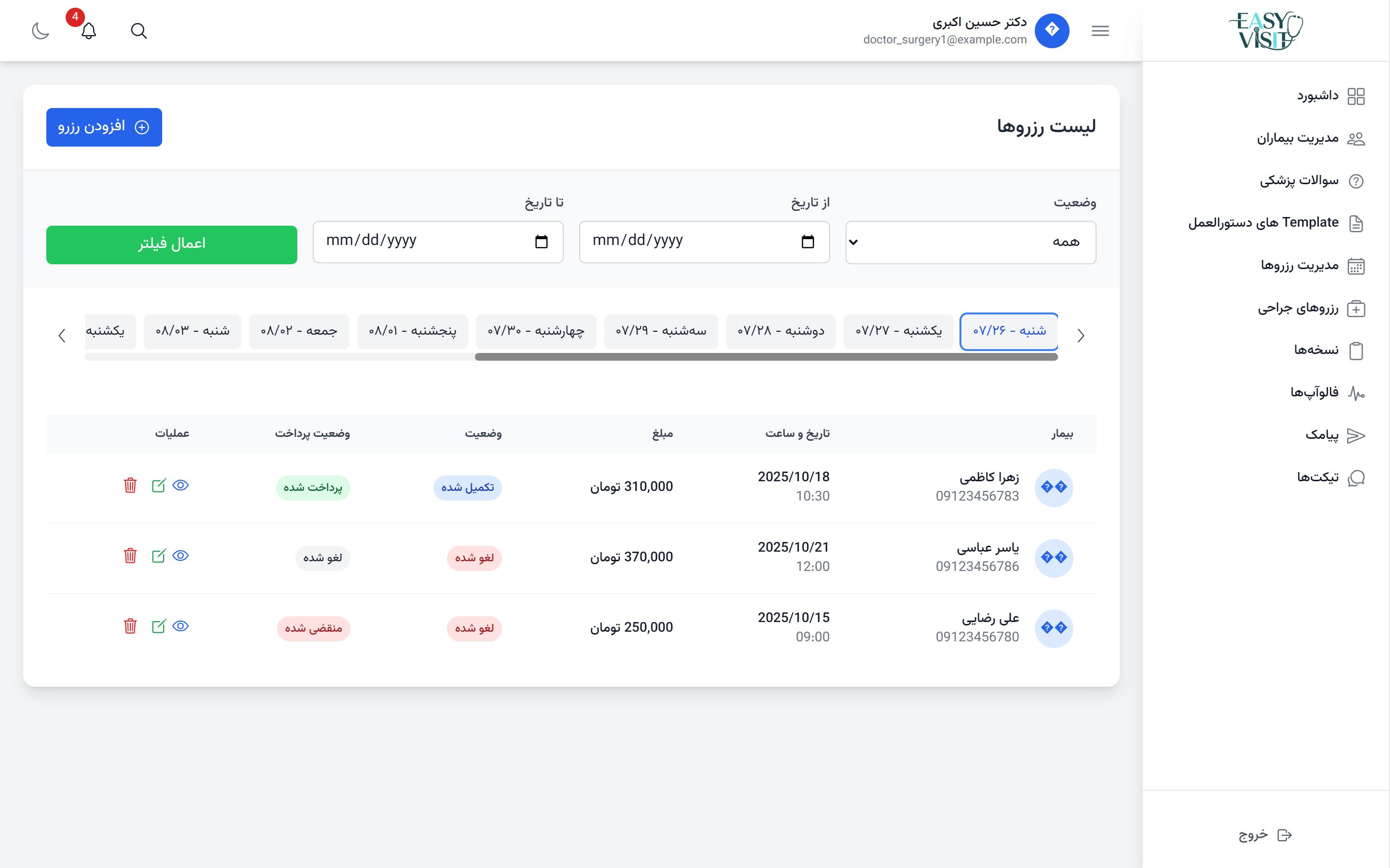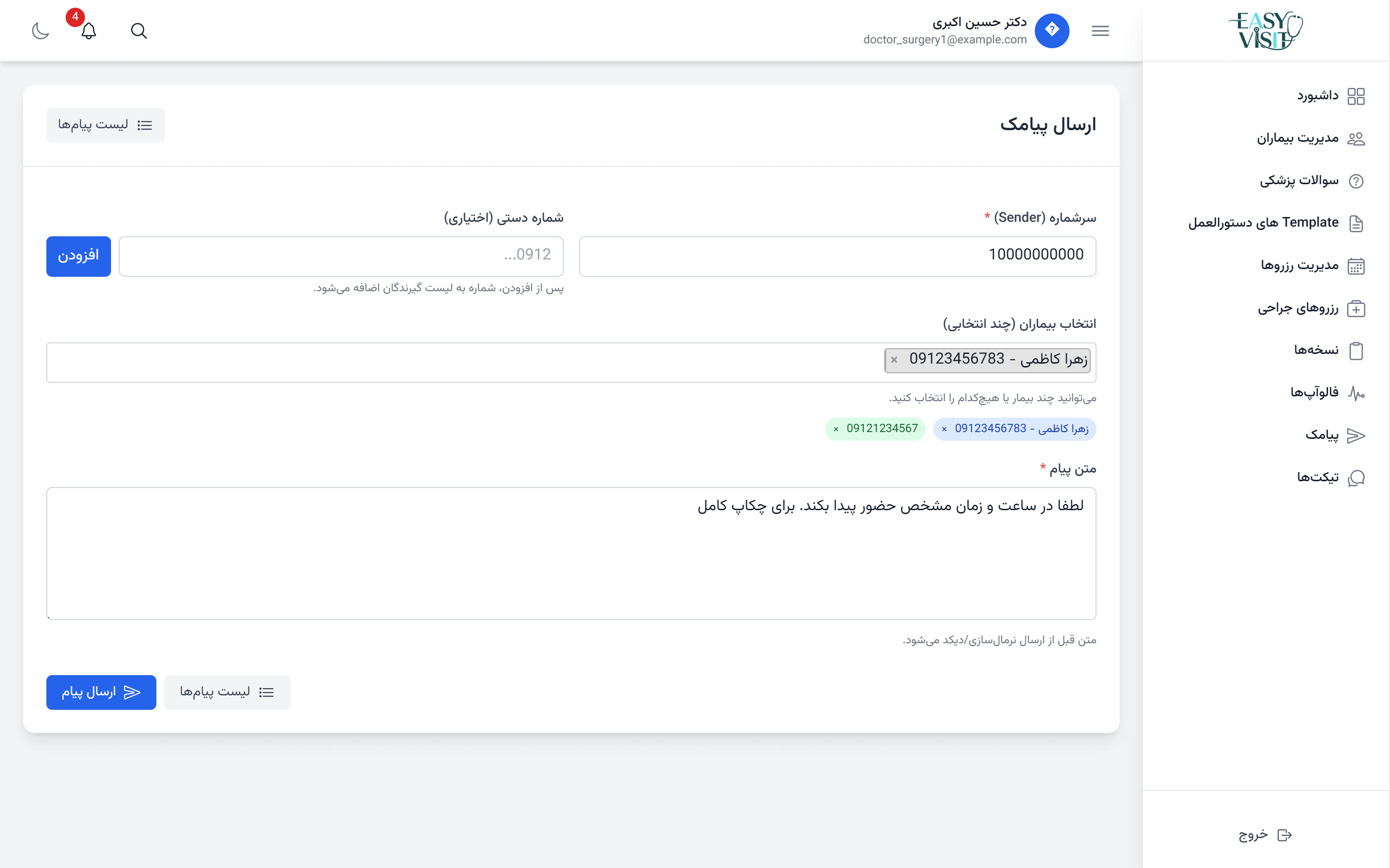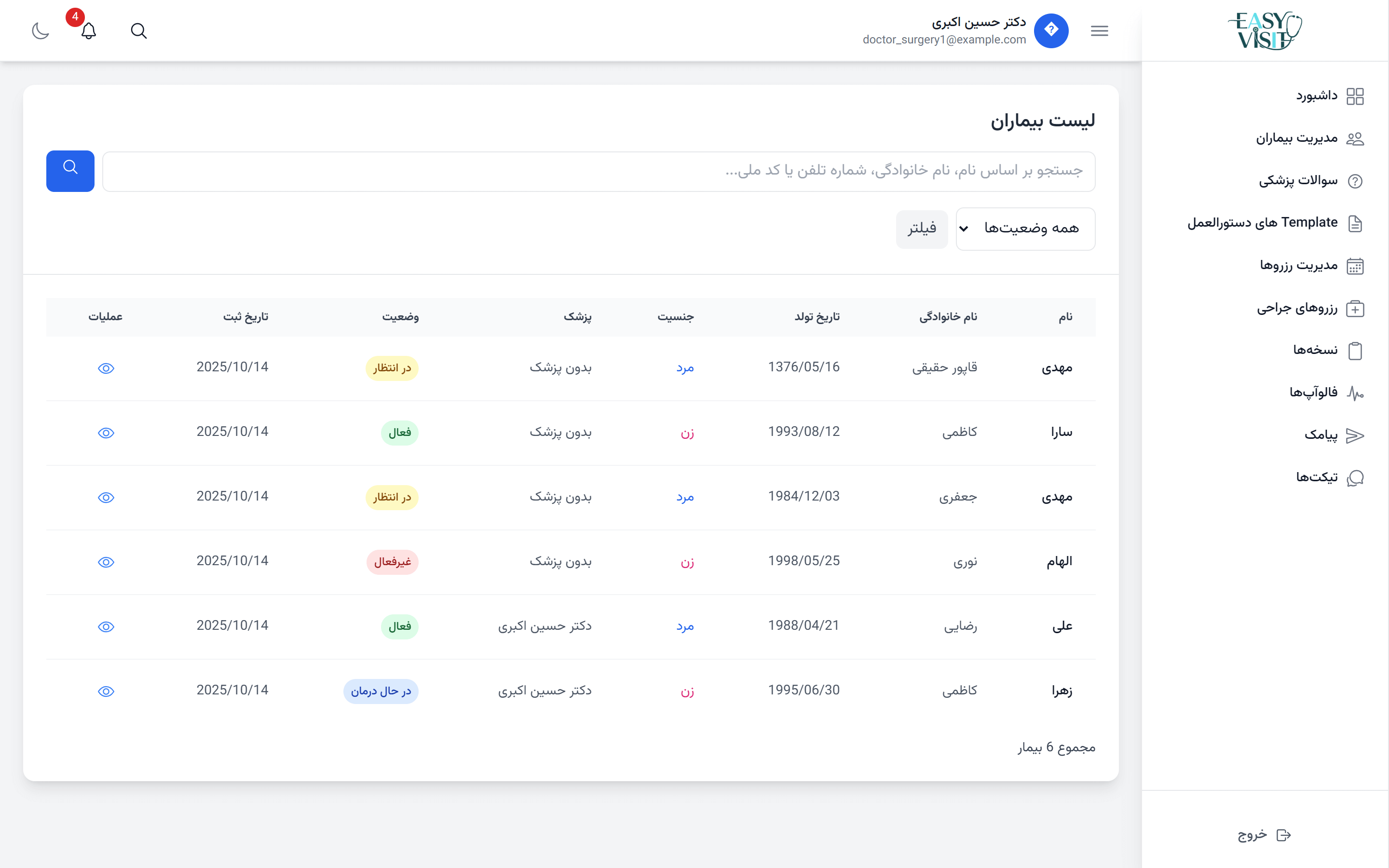 تیم پشتیبانی Easy Visit همیشه آمادهٔ پاسخگویی به پزشکان و کلینیکها برای رفع هرگونه مشکل است.
