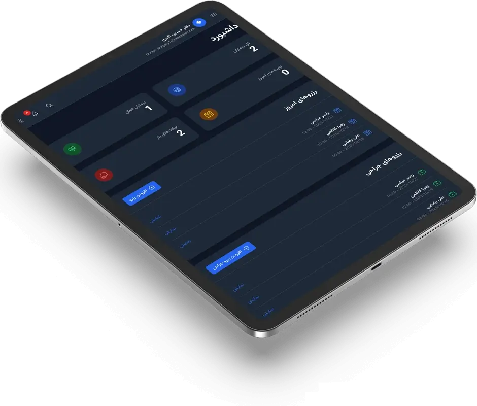 آمار عملها، وضعیت بیماران، گزارشهای مالی و عملکرد تیم درمان.